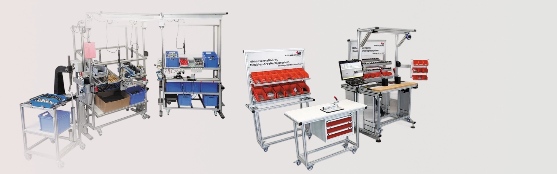 RK Rose+Krieger GmbH offers height-adjustable LEAN workstations that reduce physical strain, improve efficiency, and ensure quality. Our workstations feature digital connectivity and are suitable for various production environments, from assembly lines to quality control stations.
